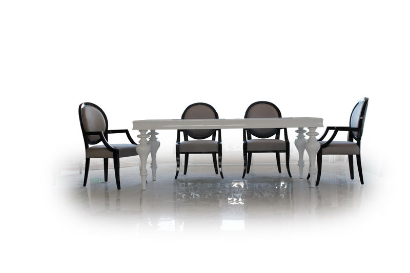 The 307 Fabric dining arm chair exemplifies ingenuity with its transitional leg design and classic arcs on the armrests offering a good grip getting up from the chair. The upholstered oval backrest and seat harmonizes beautifully with the sleek and polished wooden frame, suggesting a refined declaration of grace and elegance.
