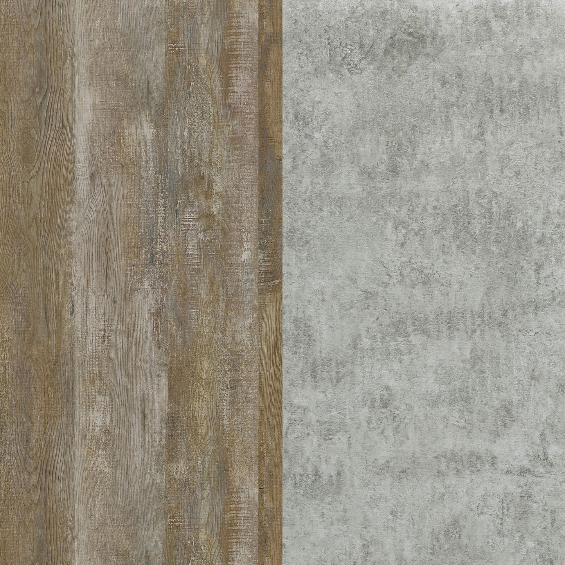 - Distressed weathered oak finish on the cabinet front pairs well with the faux cement frame
