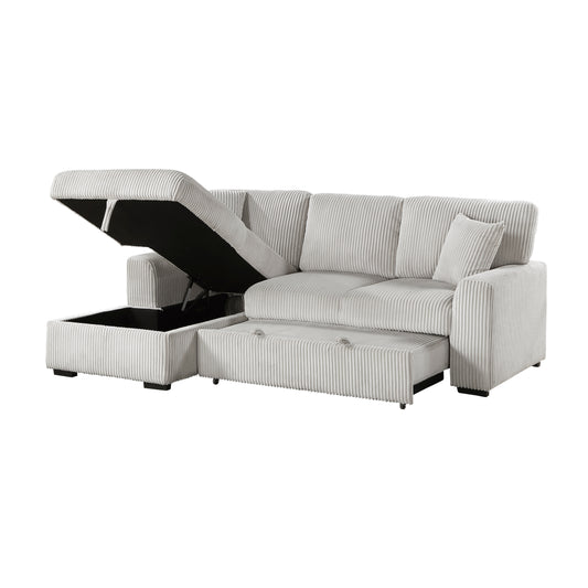 Homelegance Marsh Sectional Sofa in Moonbeam with Pull-Out Bed and Storage 9633MNB-22LRC