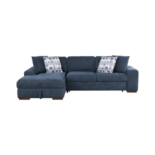Homelegance Raife Blue Chenille Sectional Sofa with Pull-Out Bed and Storage 9624BU-32LRC