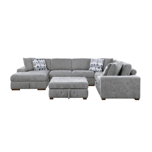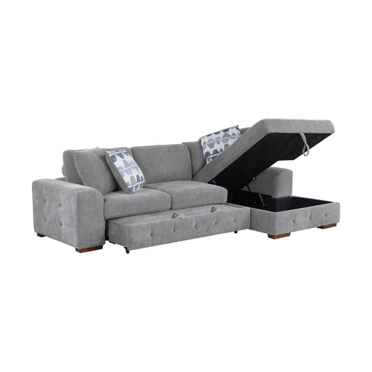 Homelegance Raife Gray Chenille Sectional Sofa with Pull-Out Bed and Storage 9624GY-32LRC