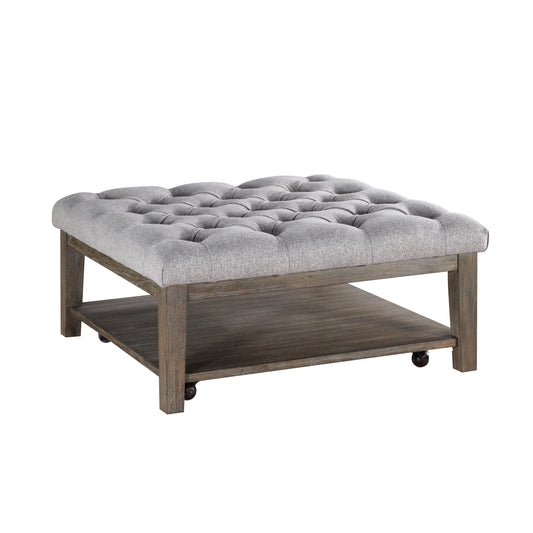Homelegance Roseboro Cocktail Ottoman with Tufted Top in Wire Brushed Dark Gray 3630-01