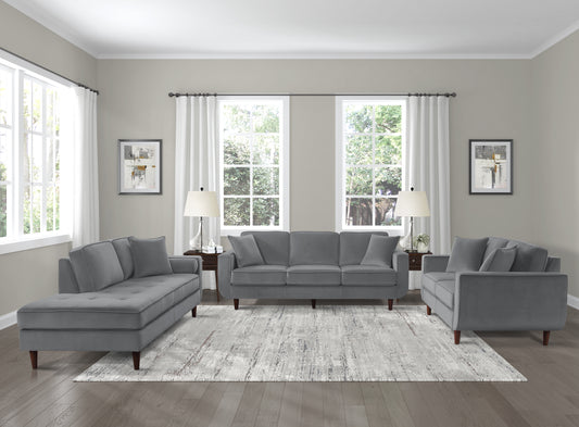 Homelegance Rand Gray Velvet Chaise with Matching Pillows 9329GY-5