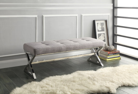 Homelegance Rory Gray Ottoman Bench with Foam Cushion and Chrome X-Frame 4605GY