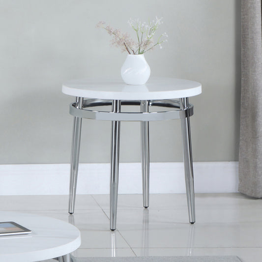 Avon Round Marble Top Stainless Steel Coffee Table White