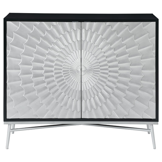 Josie 2-door Wood Sunburst Accent Cabinet Black and Silver