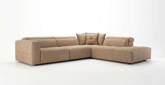 Lamod Italia Grande Italian Desert Leather Right Facing Chaise Sectional Sofa
