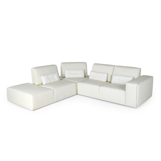 Lamod Italia Mood Italian White Leather Left Facing Sectional Sofa