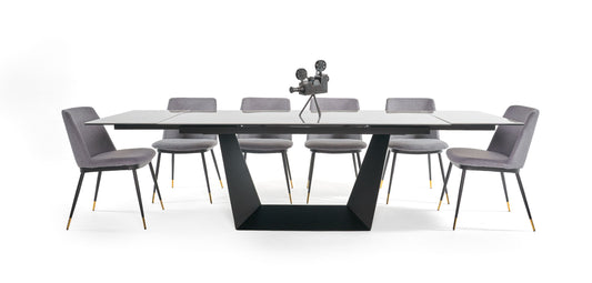Modrest Baldwin Modern Grey Ceramic and Black Metal Extendable Dining Table