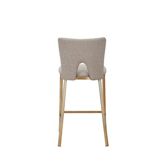 Modrest Burton Glam Greige Fabric Brass Bar Stool