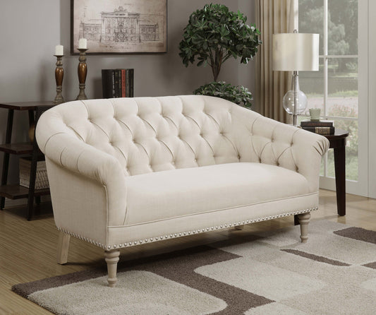 Billie Upholstered Rolled Arm Tufted Loveseat Natural