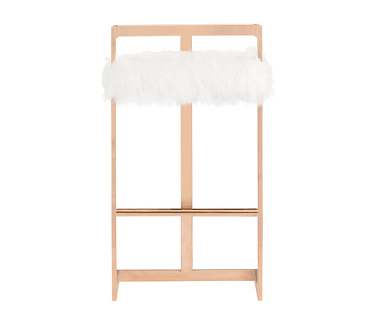 Modrest Halifax -Modern White Faux Fur and Rosegold Counter Stool