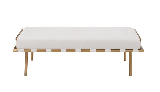 Modrest Hathaway Modern Beige Fabric Antique Brass Dining Bench