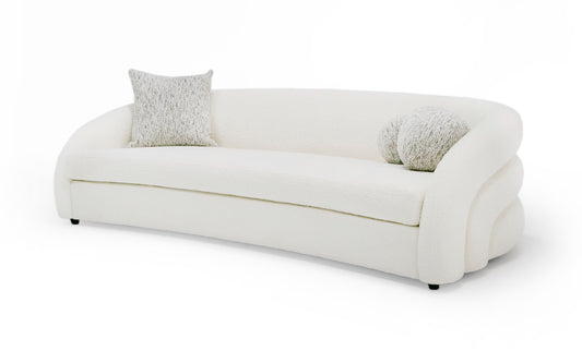 Modrest Joshua Modern 4-Seater Curved White and Taupe Fabric Sofa