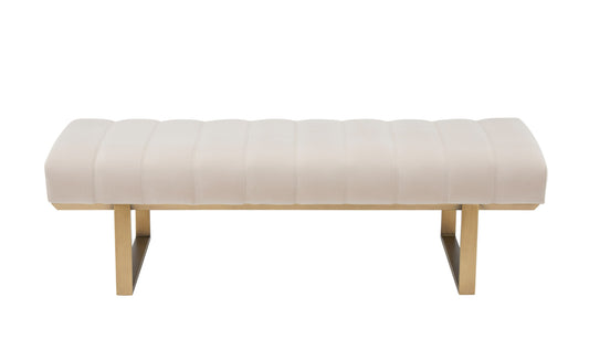 Modrest Robles Modern Beige Fabric Antique Brass Dining Bench