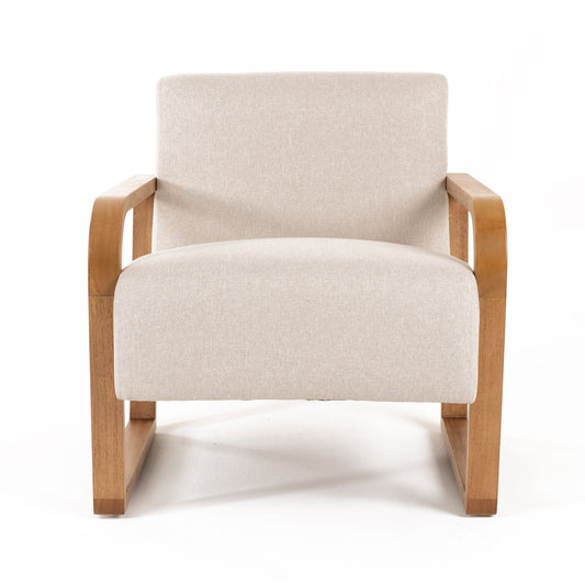 Modrest Sada Mid-Century Modern Beige Linen Chestnut Accent Chair
