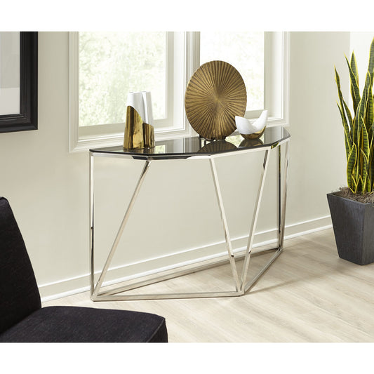 Modus Aria Smoked Glass and Polished Stainless Steel Console Table