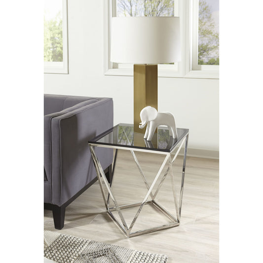 Modus Aria Smoked Glass and Polished Stainless Steel End Table