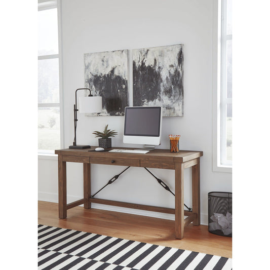 Modus Autumn Three Drawer Solid Wood Writing Desk in Flint Oak