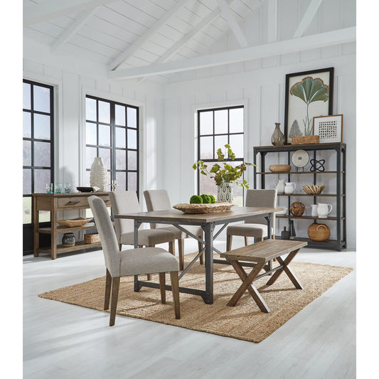 Modus Eliza Upholstered Dining Bench in Dove and Brushed Stainless Steel