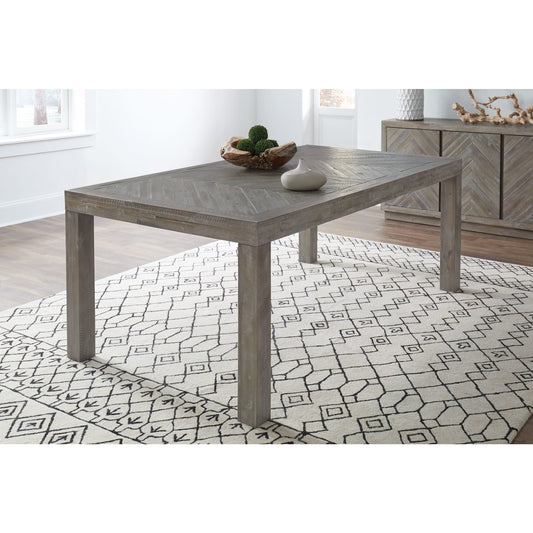 Modus Herringbone Solid Wood Rectangular Dining Table in Rustic Latte