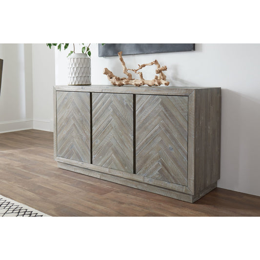 Modus Herringbone Solid Wood Three Door Sideboard in Rustic Latte