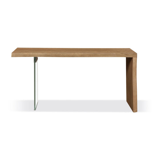 Modus One Live-Edge White Oak and Glass Console Table in Bisque