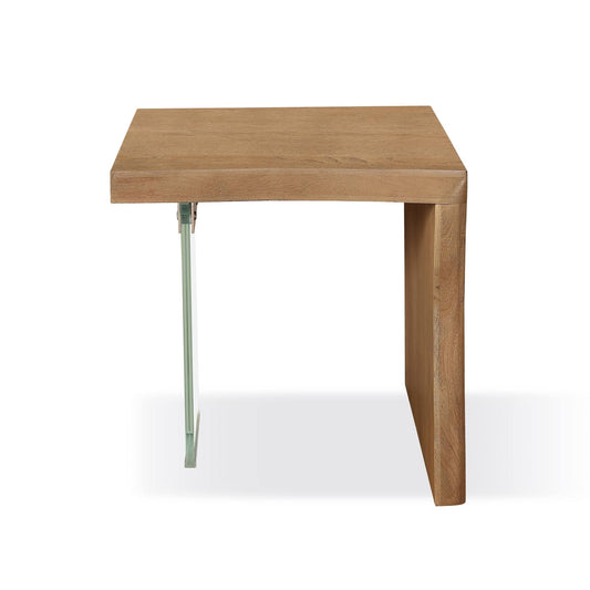 Modus One Live-Edge White Oak and Glass End Table in Bisque