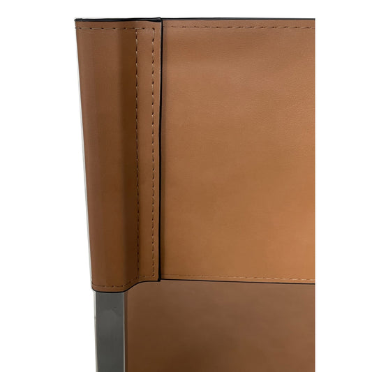 Modus One Modern Coastal Director's Dining Arm Chair in Cognac and Brushed Stainless Steel