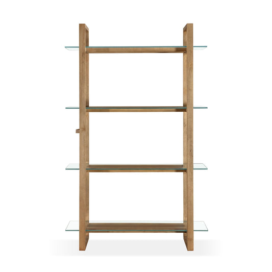 Modus One Modern Coastal Glass Shelf Bookcase in Solid Wood