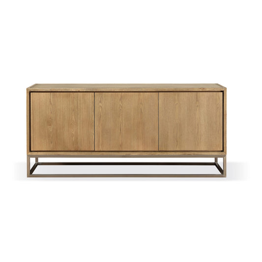 Modus One Modern Coastal Metal Base Sideboard in White Oak and Brushed Stainless Steel