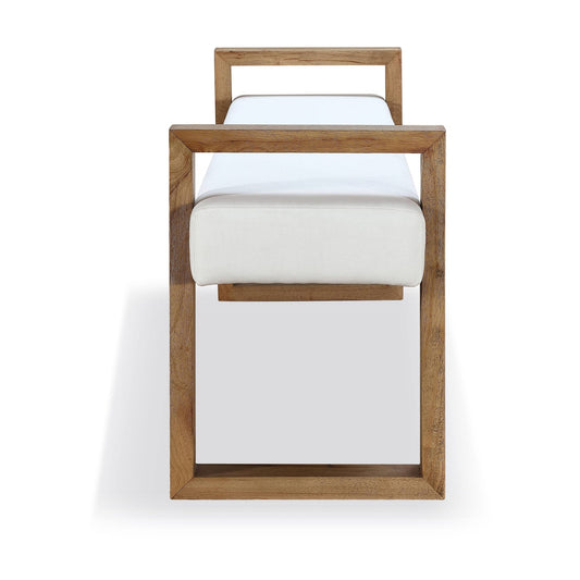 Modus One Modern Coastal Slab Leg Upholstered Dining Bench in White Oak and White Pearl