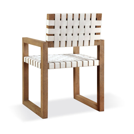 Modus One Woven Leather and Solid Wood Dining Arm Chair in White and Bisque