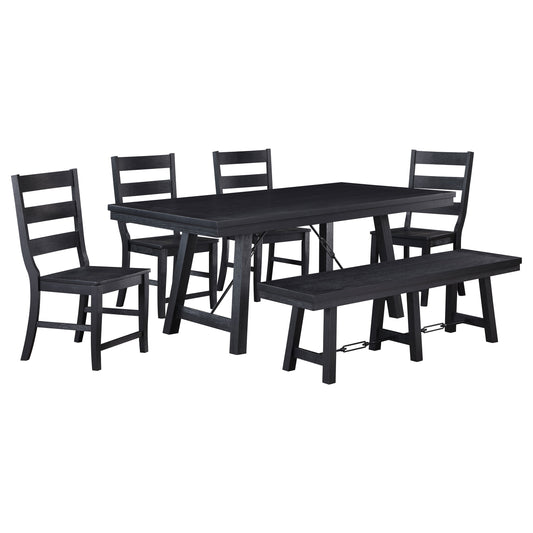 Newport 6-piece Rectangular Trestle Dining Table Set Black