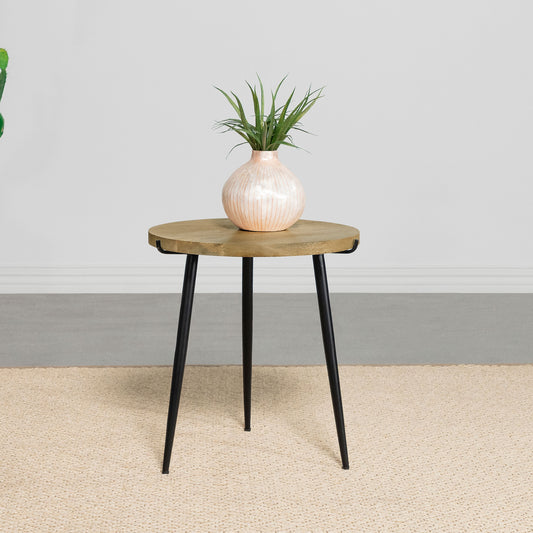Pilar Round Solid Wood Top End Table Natural and Black