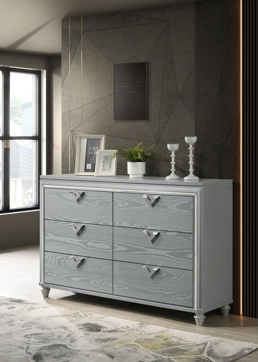 Veronica 6-drawer Dresser Light Silver