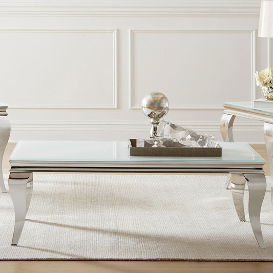 Carone Rectangular Glass Top Coffee Table White and Chrome