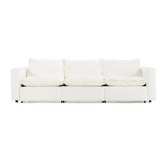 Divani Casa Almagre Modern White Fabric Sofa w/ 3 Electric Recliners