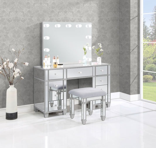 Allora 9-drawer Vanity Set with Lighting Metallic Silver