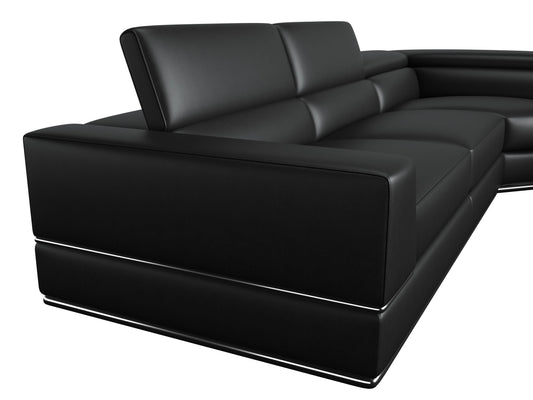 Divani Casa Pella Modern Black Italian Leather U Shaped LAF Chaise Sectional Sofa