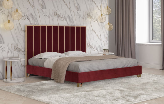 Divani Casa Reyes Modern Red Velvet and Gold Bed