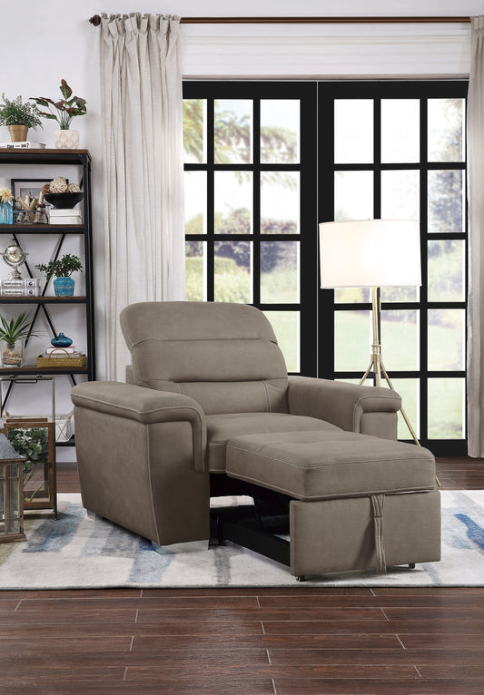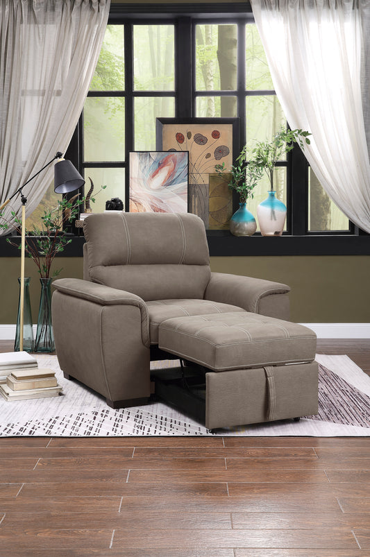 Homelegance Accent Chair with Pull-out Ottoman in Taupe Microfiber 9808STP-1