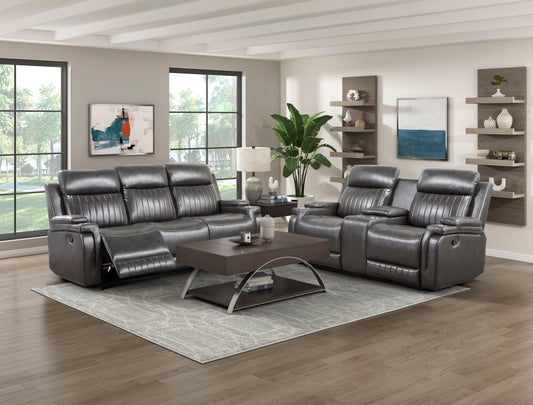 Homelegance Broomfield Gray Faux Leather Dual Reclining Sofa 9456DG-3