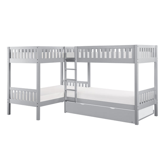 Homelegance Corner Bunk Bed with Twin Trundle Gray Orion B2063CN-1R