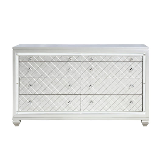 Homelegance Dresser Leesa Silver Finish with Diamond Pattern Drawer Fronts 1430-5