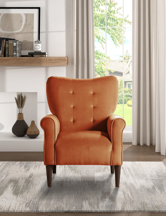 Homelegance Kyrie Accent Chair in Orange Velvet with Tufted Back 1046RN-1
