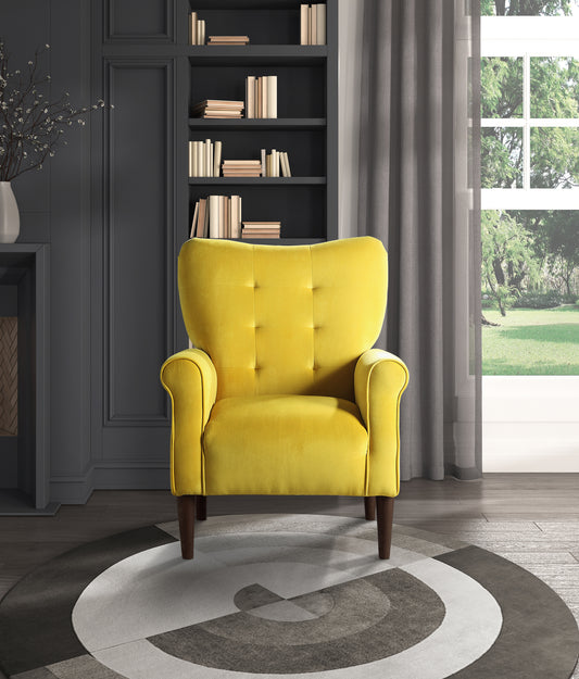 Homelegance Kyrie Accent Chair in Yellow Velvet with Tufted Back 1046YW-1