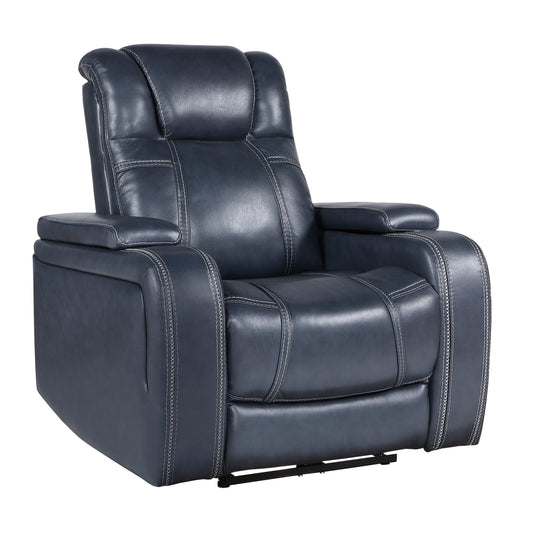 Homelegance Keziah Power Reclining Chair in Blue Top Grain Leather 9640BU-1PWH