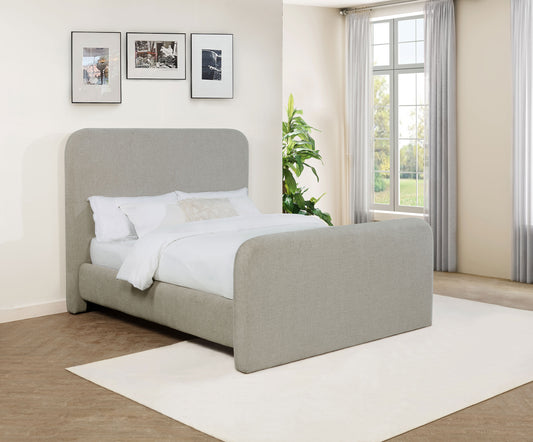 Wright 50-inch Upholstered Eastern King Bed Brown Oak