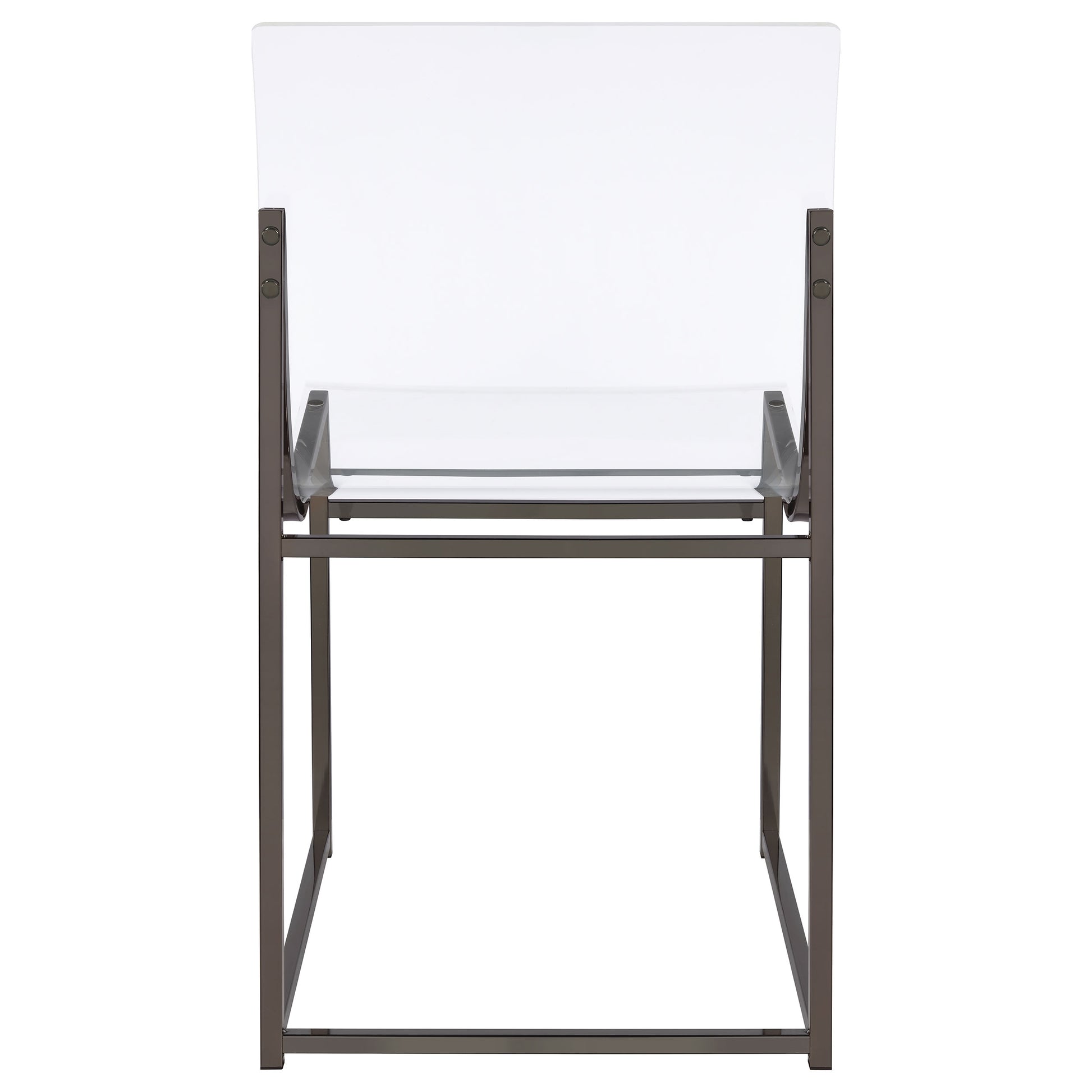 - Long, clear acrylic panels attach to frames and add a clear view of chairs' frame backs